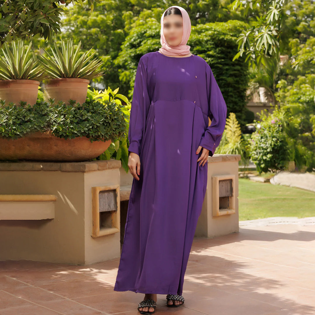 Graceful and comfortable, the Mom Abaya in floral Purple is crafted from high-quality fabric that flows beautifully. Its soft texture and delicate floral pattern make it ideal for daily wear or special gatherings.