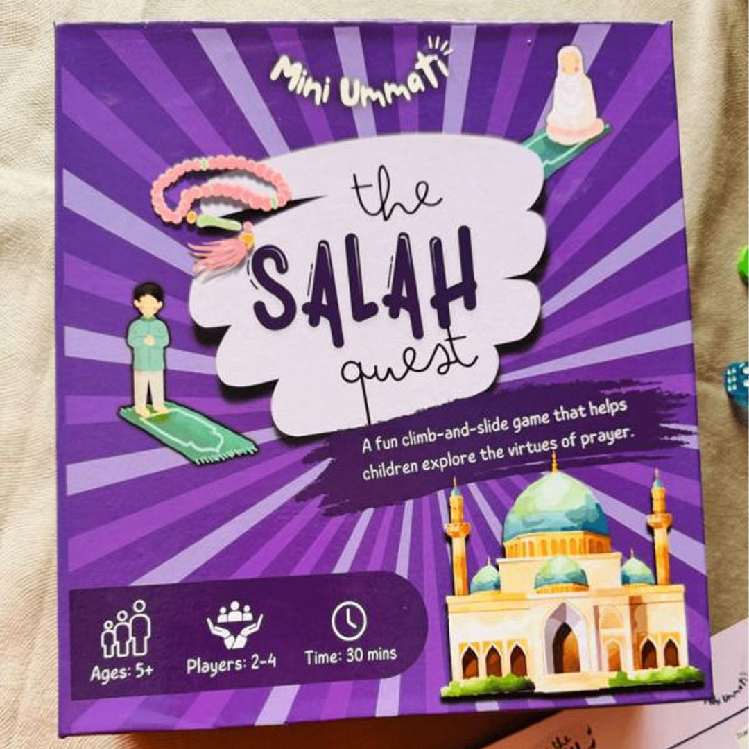 Introduce your child to the beauty of Salah with Salah Quest, an interactive board game that makes learning about prayer fun and memorable. Designed for children aged 5+, this game blends Islamic education with play, helping kids understand the importance of the five daily prayers through ladders, slides, and engaging challenges.