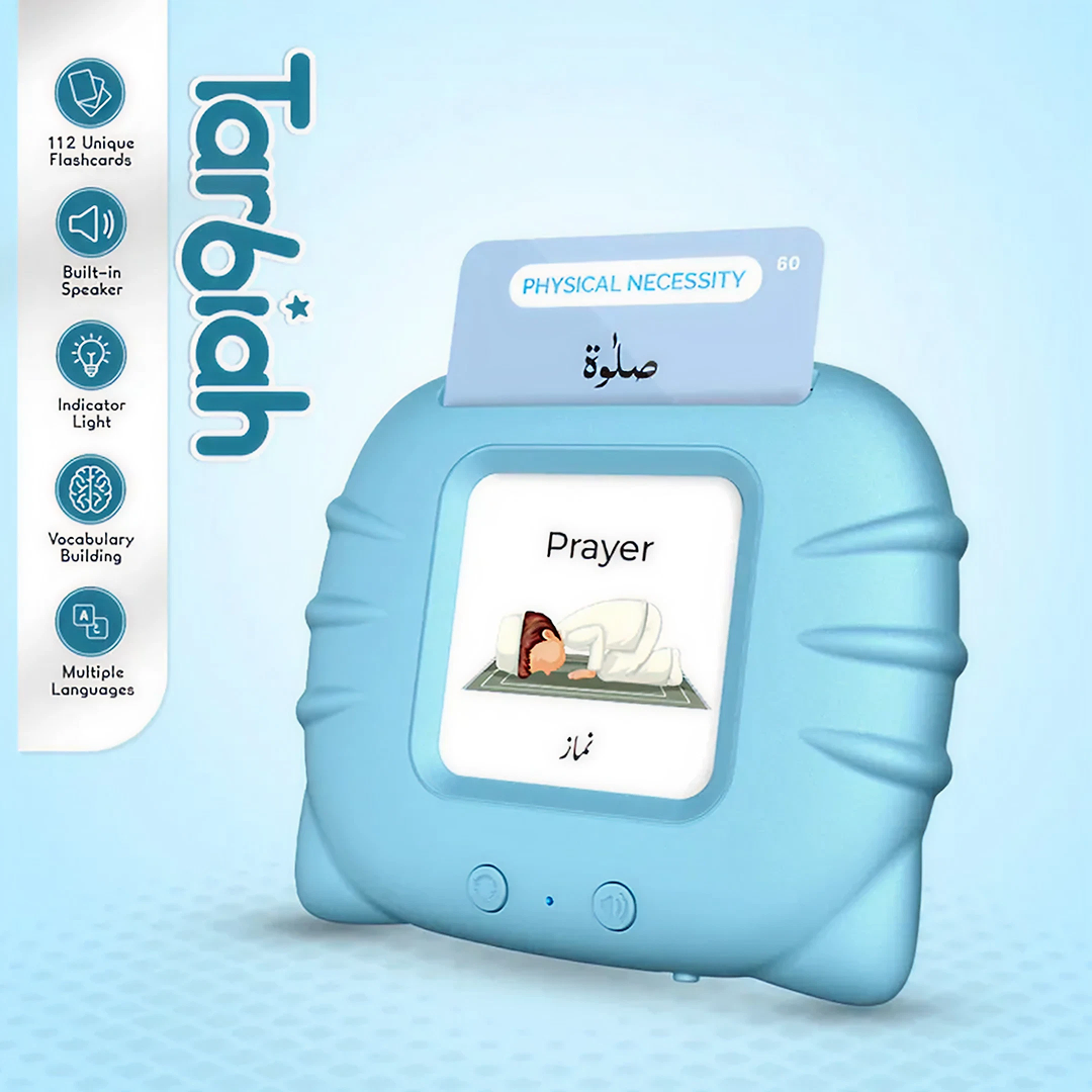 Make learning interactive with this educational flash card audio device for kids. Featuring 15 categories and 102 unique audio cards, it builds vocabulary, Islamic knowledge, and curiosity in children.