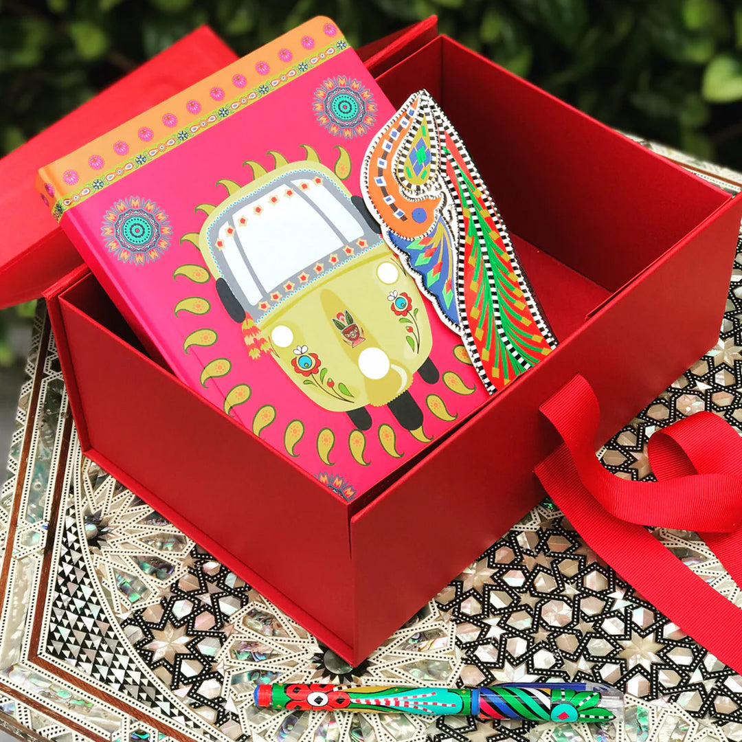 Keep your desk organized and inspired with our complete Student Stationery Pack. Designed for students and creatives, it includes a hardcover notebook with 200 lined pages, two handmade chamakpatti bookmarks, and a premium gel pen with decorative handwork, bringing color and creativity to every note you take.
