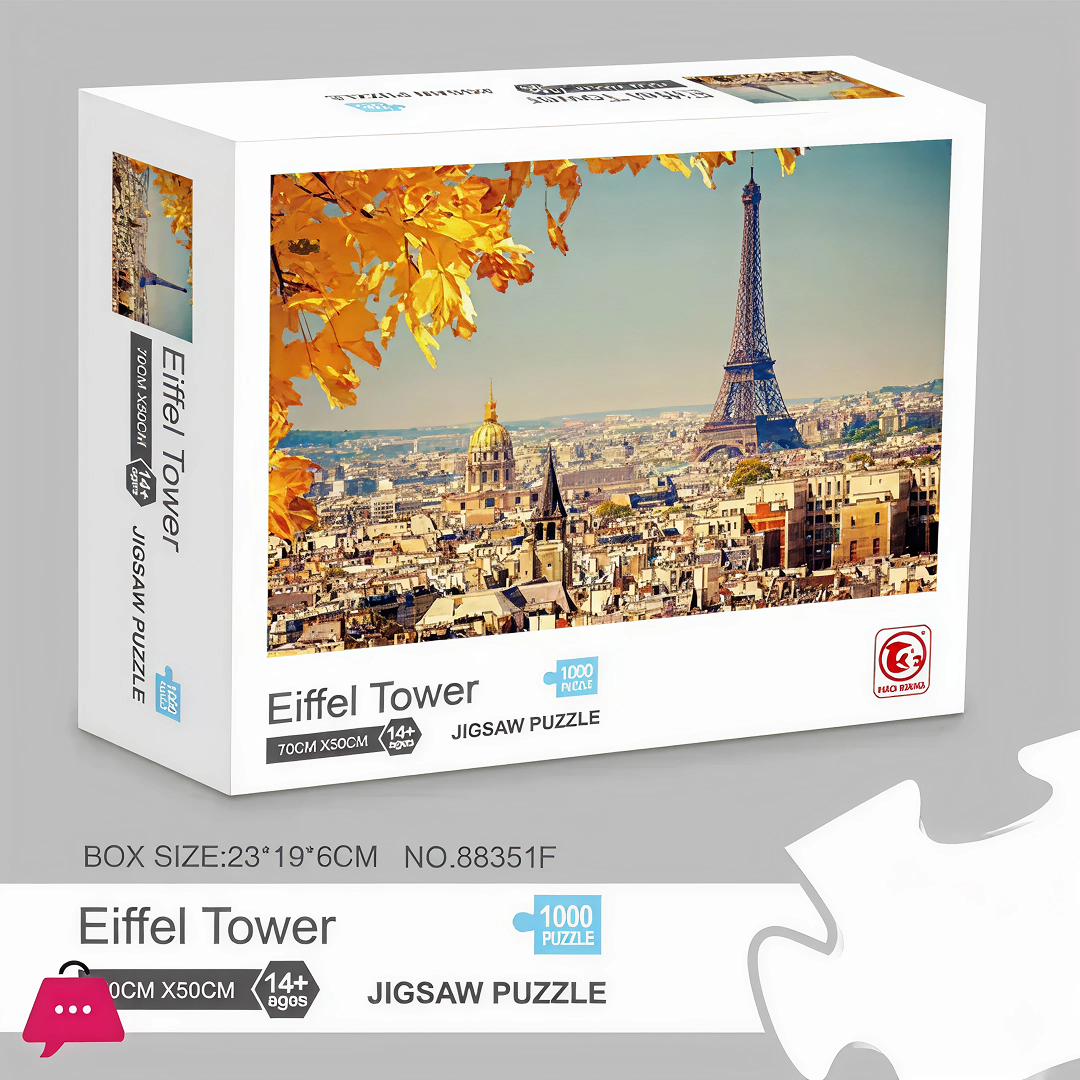 Challenge your mind with this stunning 1000-piece Eiffel Tower puzzle. Perfect for puzzle lovers, it captures the beauty of Paris in intricate detail.